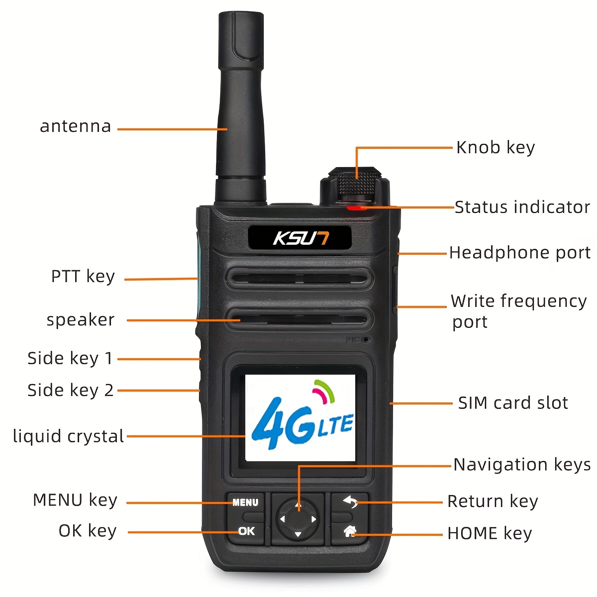 KSUN 4G Network Radio WiFi PTT Button 1.77 Inch Screen Walkie Talkies Long Range 5000 Miles For Zello (1pc, Black, No Sim Card)